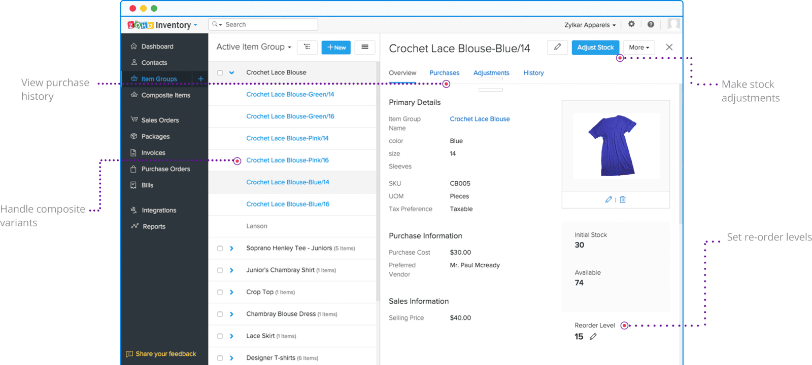 En ENTEK te ayudamos a optimizar por completo la gestión de tu inventario con Zoho Inventory. Administra existencias en múltiples ubicaciones, transfiere productos entre almacenes y genera reportes específicos para cada uno.